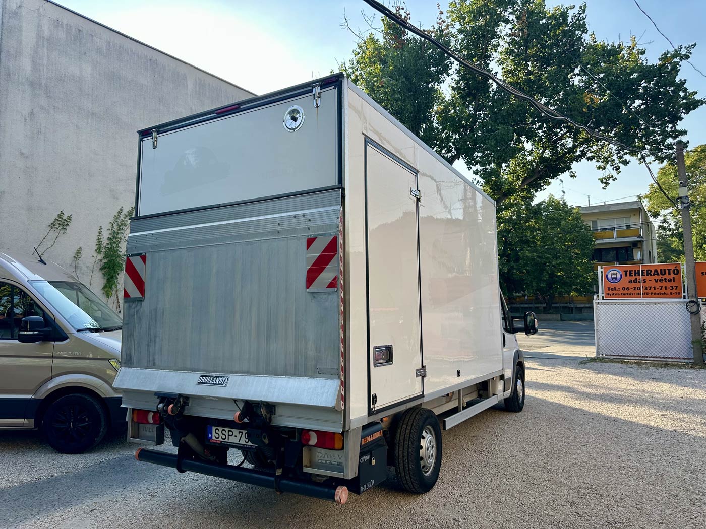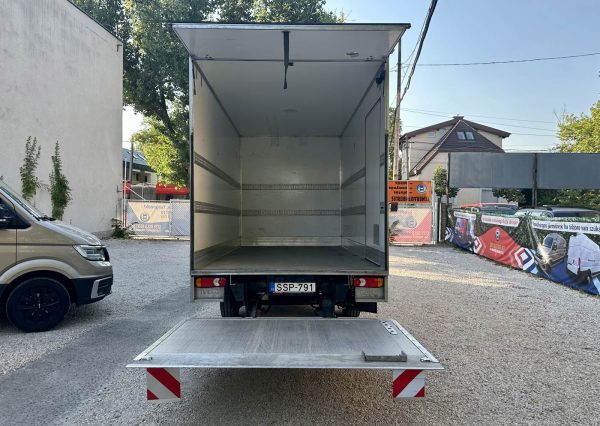 Alvázas-dobozos emelőhátfalas teherautó. Nincs kerékjárati szűkület. Kivételesen magas rakodódoboz, méret: 4,21 x 2,31 x 2,13. (8 EU raklap) Élvezhető minőségű utastér, dupla soros rögzítősínek.